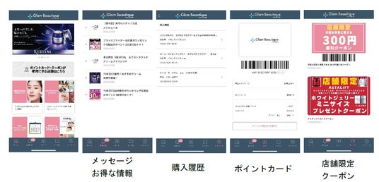 カウンセリングやメイクアップサービスなどの接客に加え、自社の専用アプリ「Glam Beautique from AEON」の肌測定機能などを活用し、コンサルティングサービスを提供します。アプリでは、購入履歴の確認やポイント付与、クーポン配信のサービスもあります。