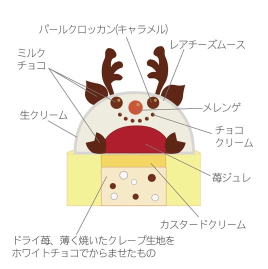 ほんのりとした酸味がやさしく食べやすいレアチーズムースに、クリスマスの人気者、スノーマンとトナカイのデコレーションを施しました。