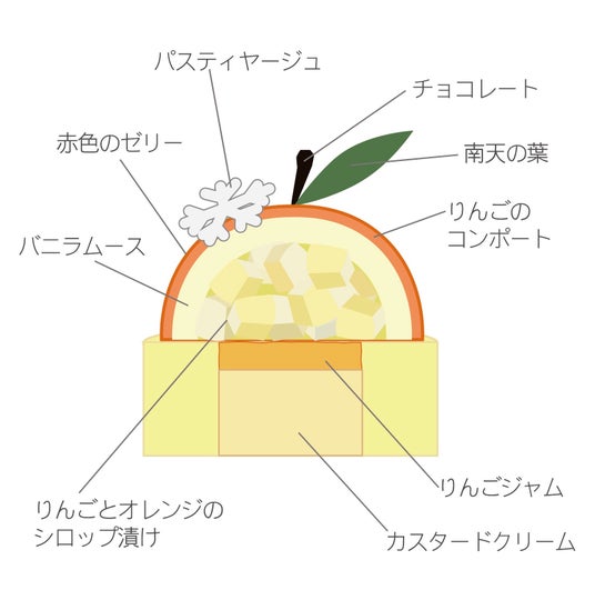 ※かまくらリンゴの上に乗っている雪の結晶のパスティヤージュ(砂糖菓子)は変更となる場合があります。