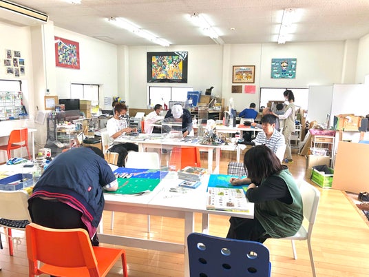 泉佐野市りんくう往来南に所在する、就労継続支援B型施設で2009年に事業を開始。障がい福祉サービス事業・飲食事業・教育事業を展開しつつ、YELLOWでは個々に寄り添った支援で、時には遊び、時にはしっかりと働き、アトリエでは日々楽しく制作しています。賞を取らず販売に繋がらずとも、日々の生活から生まれる関係性を大切にし、それぞれのんびり自分のペースで活動しています。働く人も、絵を描く人も、スタッフも、なんだかみんな楽しそう!なYELLOWでございます。