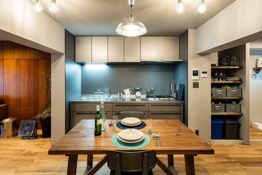 道具を愉しむ事をコンセプトにしたダルトン様とのコラボレーション案件。生活していて愉しい気持ちになれるかという事を第一に考えながら、プランを作成しました。タイルなど本物の素材にこだわり、ダルトン商品が活きるように工夫しました。マンションは壁式構造だったため、水廻りの配置に苦労しましたが、キッチンの位置を移設してダイニングキッチンとして魅せる空間が出来たと思います。単身の方やディンクスの方など、それぞれの暮らしを愉しんでいただけると嬉しいです。