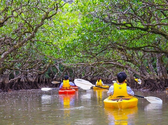 奄美大島ならではの大自然を満喫するなら、マングローブの森を探検するカヤックツアーがおすすめです。日本最大級のマングローブ原生林を、ゆっくりとカヤックで進みながら、川の静かな流れとともに豊かな生態系を楽しむことができます。ほかにも海でスノーケリングやダイビング、トレッキングなどの楽しめます。