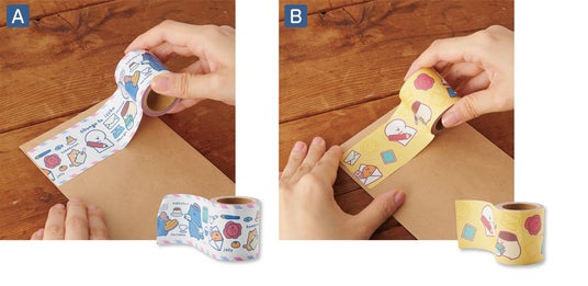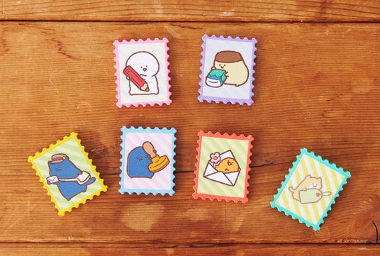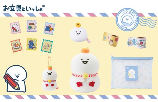 ラインナップは「おてがみポーチ」「ぬいぐるみメジャー」「パッキングテープ」「切手型バッジ」 「おもちもちもちマスコット」「おもちもちもちクッション*」の6種類です。