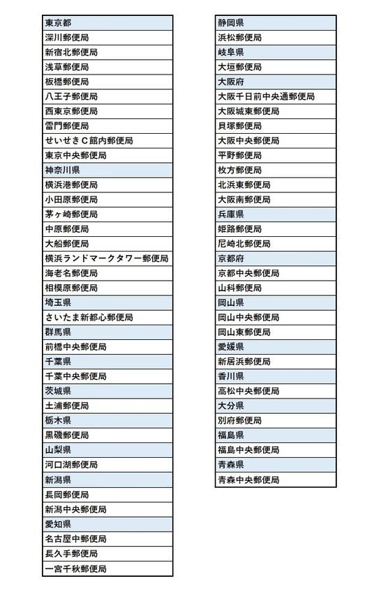 1.郵便局店頭(約50局)