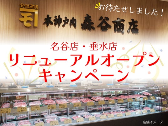 牛肉・豚肉の加工販売を手がける株式会社本神戸肉森谷商店(本社:兵庫県神戸市中央区元町通 代表取締役:平井良幸)は、名谷店および垂水店のリニューアルオープンをお知らせいたします。