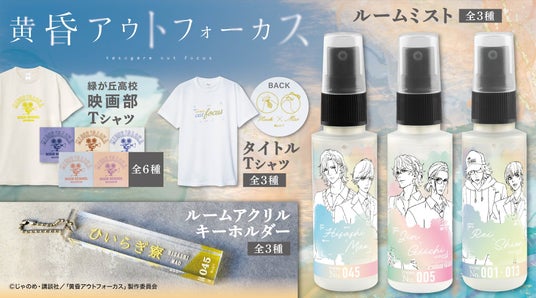TVアニメ『黄昏アウトフォーカス』より、二人の部屋を想起させる香りのルームミストや、ひいらぎ寮の部屋の鍵をイメージしたルームアクリルキーホルダーなど新グッズが登場!