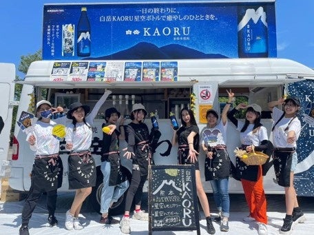 “若い世代や女性など普段焼酎をあまり飲み慣れない人でも美味しく楽しめる”をコンセプトに造られた「白岳KAORU」は、炭酸割りと相性抜群のフルーティな本格米焼酎。2023年にはおしゃれなラベルの「星空ボトル」も登場し、全国各地のイベントで「白岳しろキッチンカー」が提供するKAORU星空ハイボールやレモンサワーは若い世代を中心に人気を博しています。