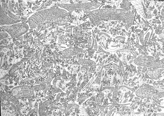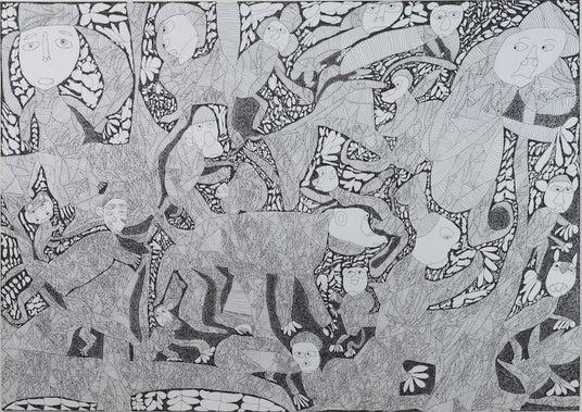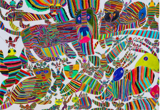 1973生まれ、滋賀県在住。2008年から『やまなみ工房』に在籍 ペンを用いて人物や動物等、モチーフが決まると彼独自の視点で余白を余すことなく、紙面全てにゆっくりと描きこんでいく。彼の内向的で真面目な性格が作品にも反映され描く線の一つひとつがとても丁寧で、まるで細い糸が絡み合っているかのように繊細に描かれる。日常では、ほとんど言葉も発することなく意見を求めても、顔を赤らめながら、か細い声で一言口にする程度しかない彼の作品からは、内に秘めた思い全てが放出され、訴えかける力強さに満ち溢れている。彼もまた自己を表現する術を作品制作に見出した1人であり、これからも彼の世界観は大きく広がっていくだろう。
