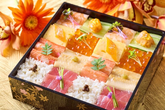 参の段の“海鮮モザイクちらし寿司”には、雲丹や鮪、ズワイ蟹やいくらなどの食材を使用。