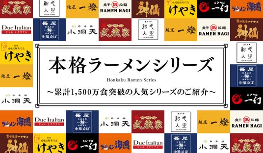 “有名店の味を身近なかっぱ寿司で”をコンセプトに、2018年6月より展開を開始。第1弾「えびそば一幻」監修の『えびラーメン』を販売すると、販売開始後10日目にして販売数10万食を突破。その後も、北海道から福岡まで全国屈指の超有名ラーメン店とコラボレーションし、かっぱ寿司でしか食べられない“うまい!”ラーメンを送り出してきました。累計販売数は1,600万食※以上の人気シリーズで、「回転寿司で本格的なラーメンが食べられる」と多くのお客さまから、ご支持いただいております。