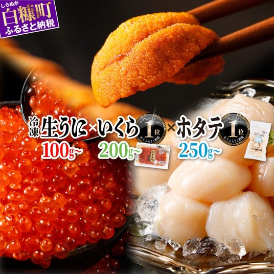 ▶ふるさと納税返礼品:冷凍生うに×いくら醤油漬(鮭卵)×ホタテの海鮮丼セット