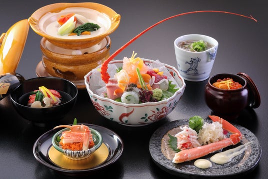 山陰地方の蟹や白バラ牛乳を使用したデザートなどが楽しめる「姫会席」も販売中