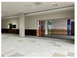 店舗とトイレの間にエントランスホールを設けて建物を一体化し、エリア全体をバリアフリー化することで、スムーズに回遊できるようになりました。