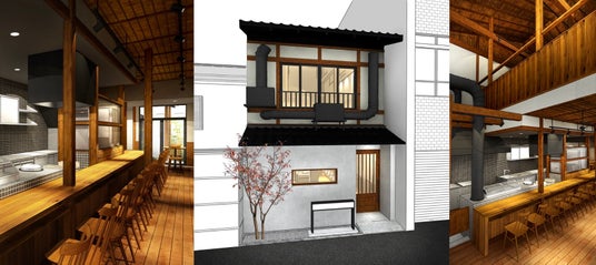 古き良き京町屋の風情を活かした店内は、目の前で調理を楽しめるライブ感あふれるカウンター席と、開放感のある吹き抜けのテーブル席をご用意しております。