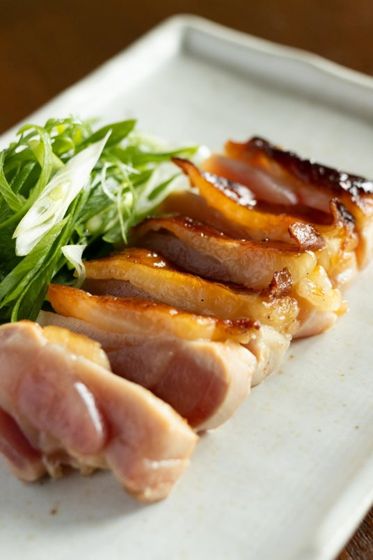 国産の丸鶏を、いかに新鮮な鮮度の良い状態で、本来の旨味を引出すことが出来るのか、これに尽きるのです。木の種類は桜の一種類に厳選し丁寧にいぶし、余分な水分を飛ばしながらもジューシーさをしっかりと残すこの手法は、古来のいぶし焼きから発想を得たものです。