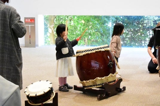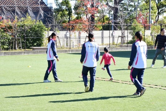 学生団体によるプログラムでは、本学和太鼓同好会と甲南小学校和太鼓教室によるパフォーマンス、チアリーディングショーなどが実施されました。キャンパス内の人工芝スペースでは、日本学生陸上競技対校選手権大会(日本インカレ)の4×100mリレーで連覇を果たした女子陸上競技部による「親子でカラダを動かそう!」が行われ、多くの親子が部員と、かけっこなどで体を動かしました。