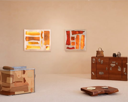 コレクションは、二脚のチェア、キャビネット、二枚のウォールパネル、三つのランプ、コーヒーテーブル、そしてアイコニックな「ピーカブー ソフト(Peekaboo Soft)」バッグで構成されています。