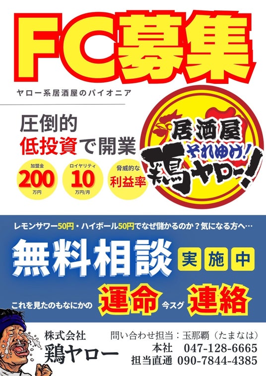 2024年12月、激安居酒屋の新たな伝説が幕を開けます。札幌、青森、静岡、名古屋の5都市で、鶏ヤローが同時オープン!