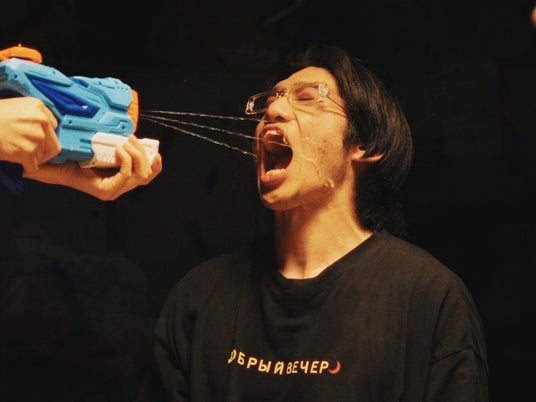 この写真気に入ってるんだ。テキーラ水鉄砲っていう狂気の沙汰みたいなこともやってるから注文待ってるよ。