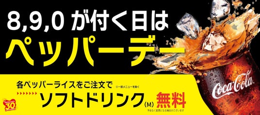 12月は、8、9、0のつく日に対象のペッパーライスをご注文でソフトドリンク(M)を1杯無料で提供いたします!