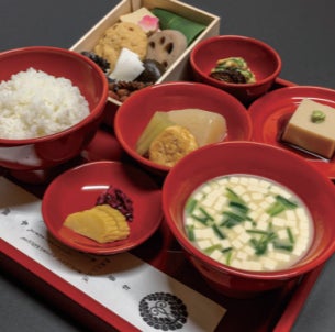 精進料理は動物性の食材は一切用いず、一汁五菜を基本としています。京野菜の聖護院大根や湯葉の炊き合わせ、柴漬けなど京都ならではの料理もお楽しみいただけます。
