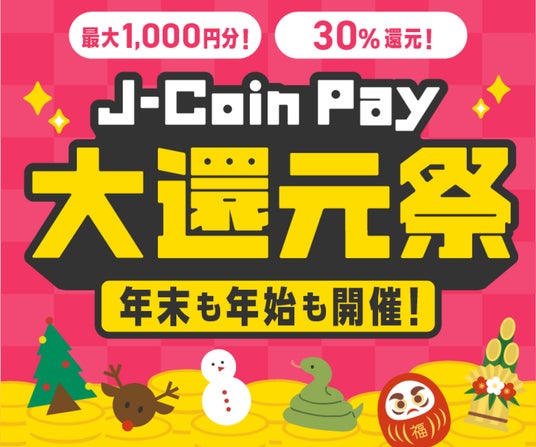 「J-Coin Pay大還元祭」を開催!2つのお得な特典で最大1,000円分のJ-Coinボーナスをゲットしよう!