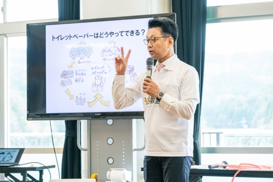トイレットロールを製造する企業として、「うんちで悩む子どもたちをゼロに。」を目標に日本トイレ研究所様と始めた「うんち教室(R)」が活動再開を迎え、石川県七尾市の小学校で実施させていただいたこと、とても嬉しく思います。授業を受ける児童たちが真剣に向き合う姿勢が印象的でした。