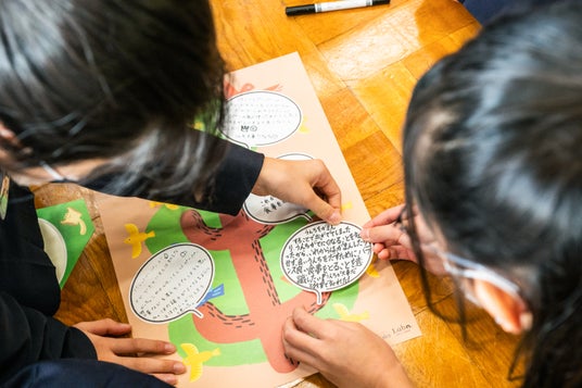 最後に、配布されたオリジナルステッカーの吹き出しに、授業での学びや今後意識したいことを書き込んで授業は終了。「いいうんちを出すために朝ごはんを食べる」「トイレットロールが木からできていることを初めて知ったので大切に使う」などの感想が聞かれました。中には今年1月に発生した能登半島地震被災時を振り返って、「地震のときは仮設トイレが嫌で我慢することもあったけれど、授業を通して、うんちは我慢すると体によくないと学んだ」といった声も聞かれました。