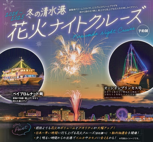 「冬の清水港」魅力創出へ、今年も清水港花火ナイトクルーズを開催!