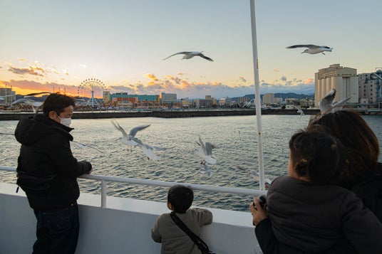 ベイプロムナード号ではユリカモメにエサやり体験ができます