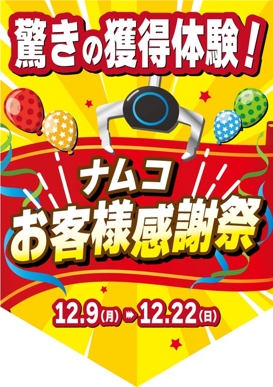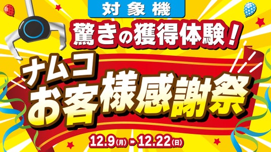 株式会社バンダイナムコアミューズメントは、『ナムコお客様感謝祭』を2024年12月9日(月)から2024年12月22日(日)まで、全国約100店舗のアミューズメント施設「ナムコ」で開催します。