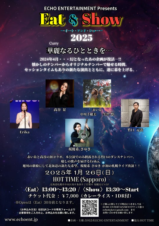 【ECHO ENTERTAINMENT Presents】『Eat&Show2025 ~華麗なるひとときを…~』に旭川の歌姫、桜優希-さゆき-がスペシャルゲストとして出演決定!!
