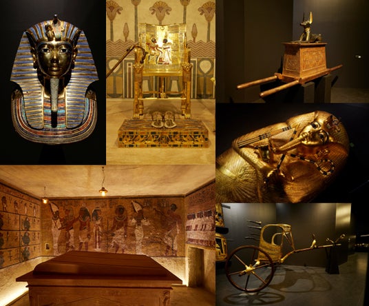 100余年前にツタンカーメンの王墓から発見された黄金のマスクや黄金の棺は、今や門外不出の宝物となっています。本物を見るには飛行機に乗ってエジプトへ行くしかありません。そこで本展示会では日本にいながらにして、エジプトへ、ルクソールへ、古代へ、そして黄金の遺物の目の前にワープできる仕掛けをたくさん用意しました。