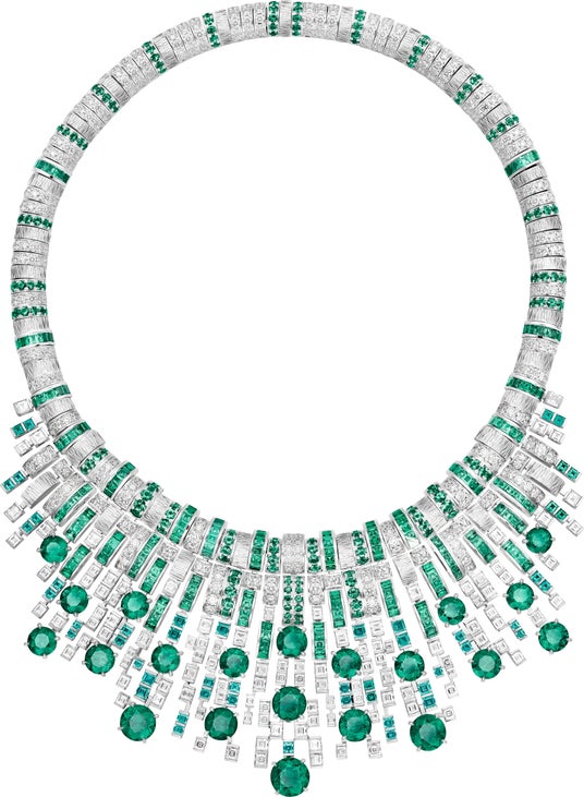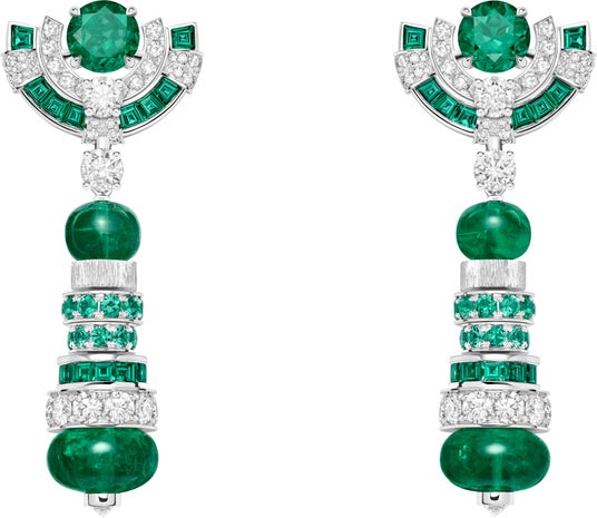 コ・ミンシはエメラルドをあしらったネックレス、イヤリング、リングでピアジェの宝石の無限の魅力を強調しました。
