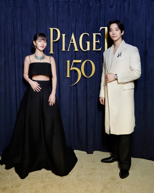 ピアジェ創立150周年を記念して、グローバル・アンバサダーのイ・ジュノ、女優のコ・ミンシをはじめとする著名なゲストが出席しました。イ・ジュノは、サファイアをあしらった「アルティプラノ プレシャス スケルトン ハイジュエリー ウォッチ」と、ブローチのようにスタイリングされた「ライムライト ジェム オブ ローズ イヤリング」を身に着け、ピアジェの芸術性をアピールしました。