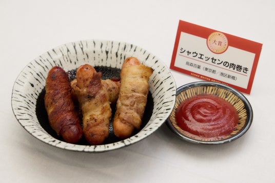 このような名誉ある賞をありがとうございます。物心ついたときから食べていたシャウエッセンを更に美味しくするにはどうしたら良いかを考えて、シャウエッセンのパリッ!!に加えて豚バラ肉をカリッ!!とするように工夫しました。お店がオープンした6年前から愛されているメニューです。