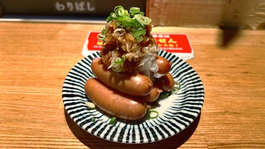 「食のセレクトショップ」というコンセプトで人気を博す、新橋の新感覚居酒屋で定番人気を誇るメニュー。シャウエッセンを豚バラ肉で巻き、表面が香ばしくなるまで焼きあげました。カリッとした豚バラにシャウエッセンのパリッとした食感が続き、両者の肉汁が口の中で一体化。ケチャップの酸味が後味をさっぱりさせてくれます。
