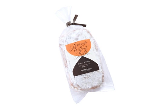 国産小麦のシュトレン(栗とオレンジ) ¥1,944広島アンデルセン、今年の新作シュトレン。ほっくりした渋皮栗の甘味に、さわやかなオレンジがアクセント。白ワインやスパークリングとのペアリングもおすすめです。