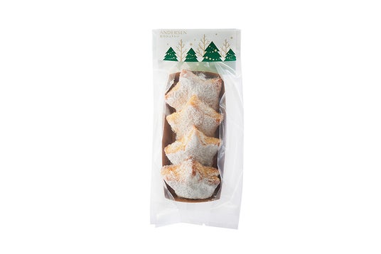 星のシュトレン ¥584アンデルセン童話「もみの木」の星の飾りをイメージした、ミニサイズのかわいいシュトレン、4個入り。レーズン、シトロンピール、オレンジピール、マジパン(アーモンドペースト)を混ぜ込んだ生地を星の形に。