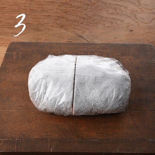 (3)ラップでぴったりとくるみ、高温多湿を避けて常温で保存をしてください。