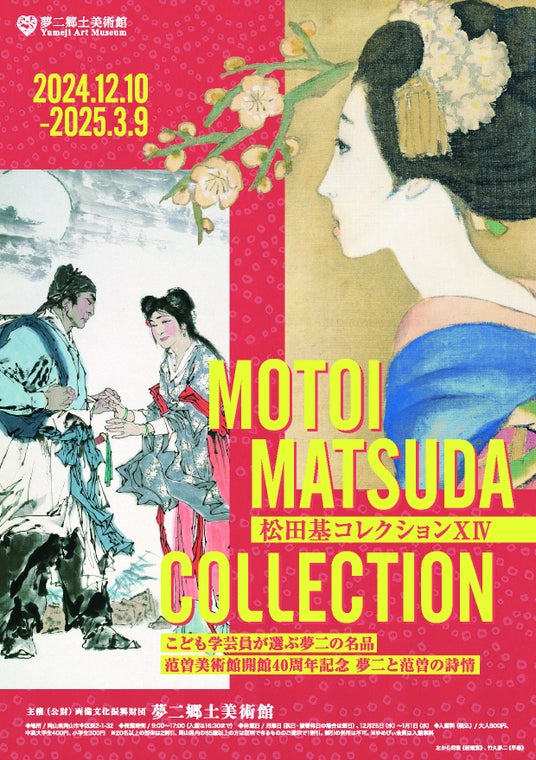 夢二郷土美術館本館(所在地:岡山県岡山市中区浜2-1-32、館長:小嶋光信、運営:公益財団法人両備文化振興財団)では、2024年12月10日(火)より、「松田基コレクションXIV:こども学芸員が選ぶ夢二の名品/范曽美術館開館40周年記念 夢二と范曽の詩情」と題した企画展を開催いたします。