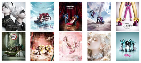 本展示会は、靴を「履くためのもの」から「飾るためのアート」へと進化させた、MAYLA独自の価値観を落とし込んだ美しい靴や、人気アニメ・ゲームとのコラボレーション作品を含む約60点以上の作品が一堂に集結。展示商品はオンラインで購入可能(一部対象外商品あり)で、入場料は無料。