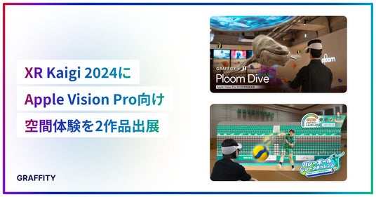 ARエンタメのGraffity株式会社(以下、Graffity)は、2024年12月11日(水)から12月13日(金)に開催される国内最大級のXRカンファレンス「XR Kaigi 2024」にて、Apple Vision Pro向け空間体験「Ploom Dive」「バレーボール・レシーブチャレンジ」の2作品をブース出展することが決定いたしました。