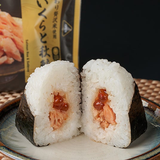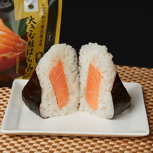 【内容】いくらはアラスカ産の天然サケイクラで、マスイクラより粒感が大きいのが特長です。鮭は北海道産の秋鮭のほぐし身を使用し、ごちむすびシリーズの中でも人気な具材を合わせました。
