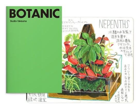 タケウマのスケッチャーとしての活動にフォーカスした本フェアでは、タケウマが旅行中に描いたトラベルスケッチ300点以上が収録された画集『Travel Sketch』を中心に、植物の小スケッチ集『BOTANIC』、人物の小スケッチ集『IN THE TRAIN AT THE STATION PLATFORM』など、新刊の3冊を紹介します。また、タケウマ愛用のモレスキンのノートに描かれた原画が、ページを開いた状態で額装された作品や、スケッチを始めたい方の為にタケウマがお勧めするペンとノート、スケッチポーチがセットになったスタートセットを販売します。そのほか、海外の書店でも人気の高いこれまでのスケッチ画集や複製ポスターも合わせて販売します。
