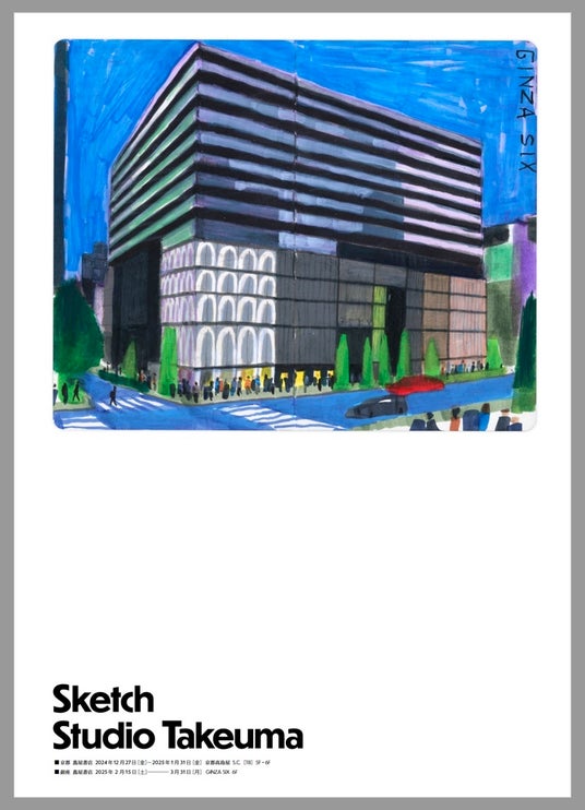 京都 蔦屋書店(京都市下京区 京都高島屋 S.C.[T8]5F・6F)では2024年12月27日(金)~2025年1月31日(金)の期間に、銀座 蔦屋書店(東京都中央区 GINZASIX 6F)では2025年2月15日(土)~2025年3月31日(月)の期間に、「タケウマ スケッチ」フェアを開催します。イラストレーター・タケウマのスケッチャーとしての活動に注目し、作品集やスケッチ原画、グッズを販売します。