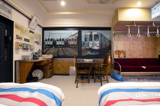 今回造成されるコンセプトルームでは、実際の運行時に車内で使用していた座席や荷物棚、看板などの備品、計器やヘッドライトなどの機器類を室内装飾に用いており、鉄道マニアにとっては必見の内容。ホテルでありながら、弘南鉄道の歴史に浸りつつ往年の車両に乗車しているかのような気分を味わえます。