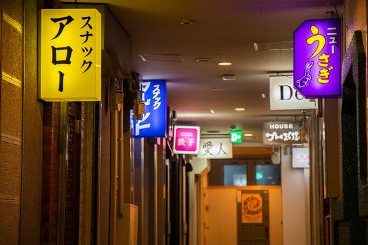 弘前市の繁華街・鍛冶町にある集合ビルのワンフロアをまるごとリノベーションした宿泊施設。客室はかつて入居していたスナックの店舗跡を活用し、看板や意匠をそのまま生かしたユニークな設えになっている。「泊まれるスナック街」として話題に。非対面式の無人型ホテルとして営業。