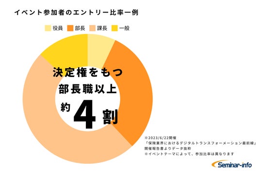 セミナーインフォ主催の協賛イベントは、集客する対象や開催テーマをイベントごとに設定しております。そのため、自社に適した集客対象/テーマのイベントに出展することで、自社のプロモーションに適したリードを獲得できます。