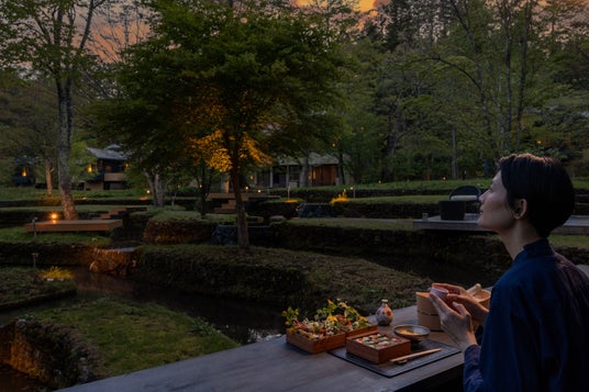 【星のや軽井沢】棚田ラウンジを貸し切り、春の訪れを寿ぐ、1日1組限定の優雅な食体験「春花の晩餐」を提供
